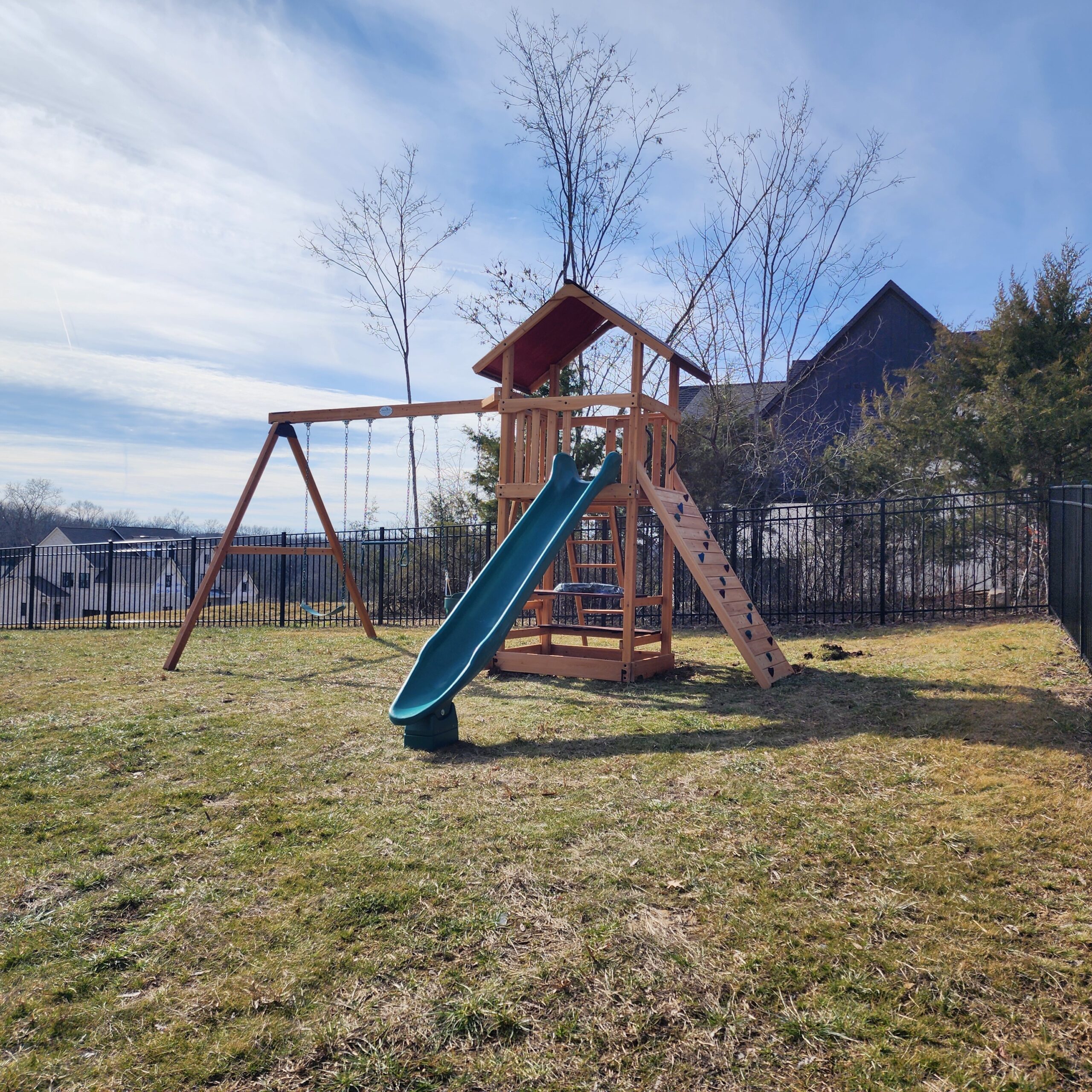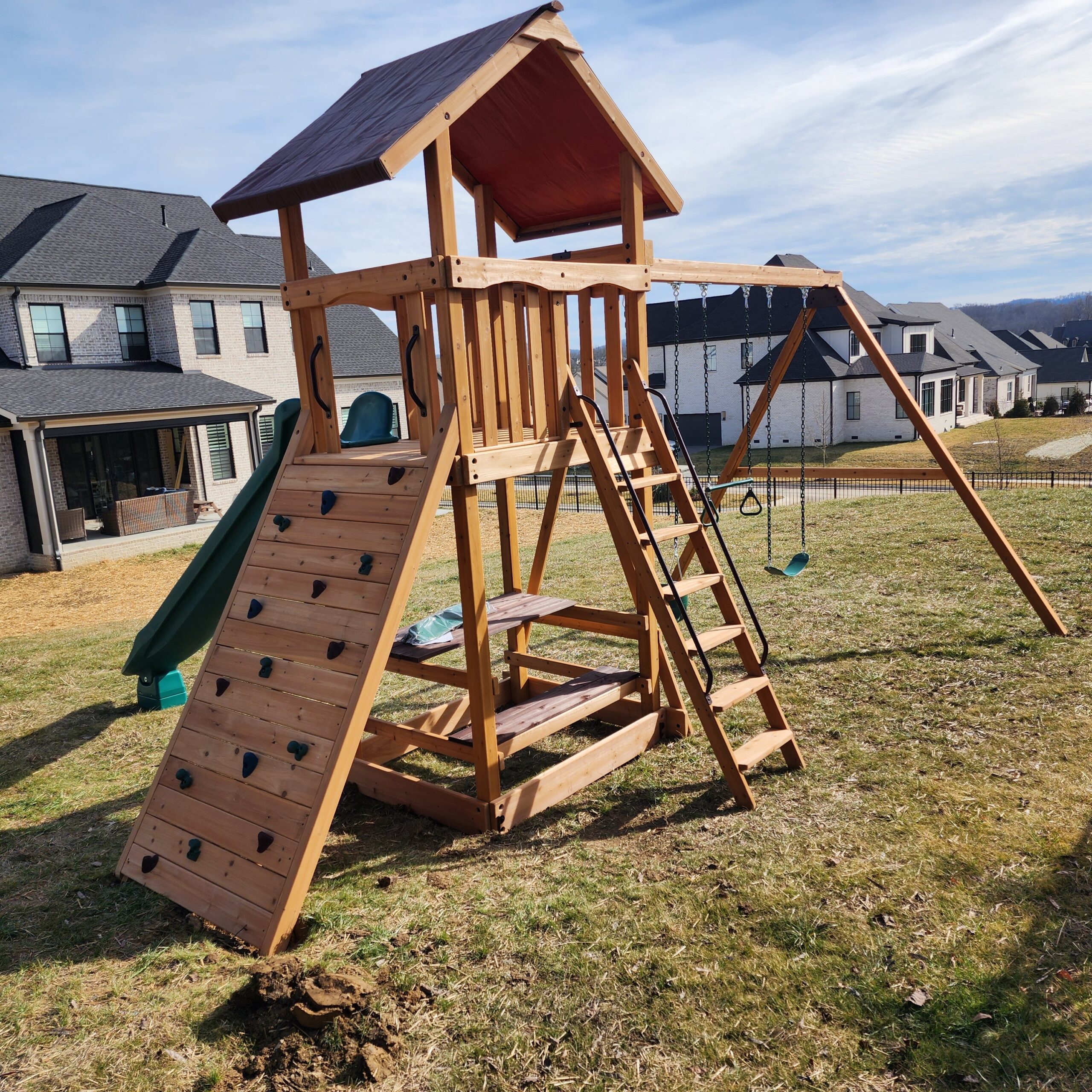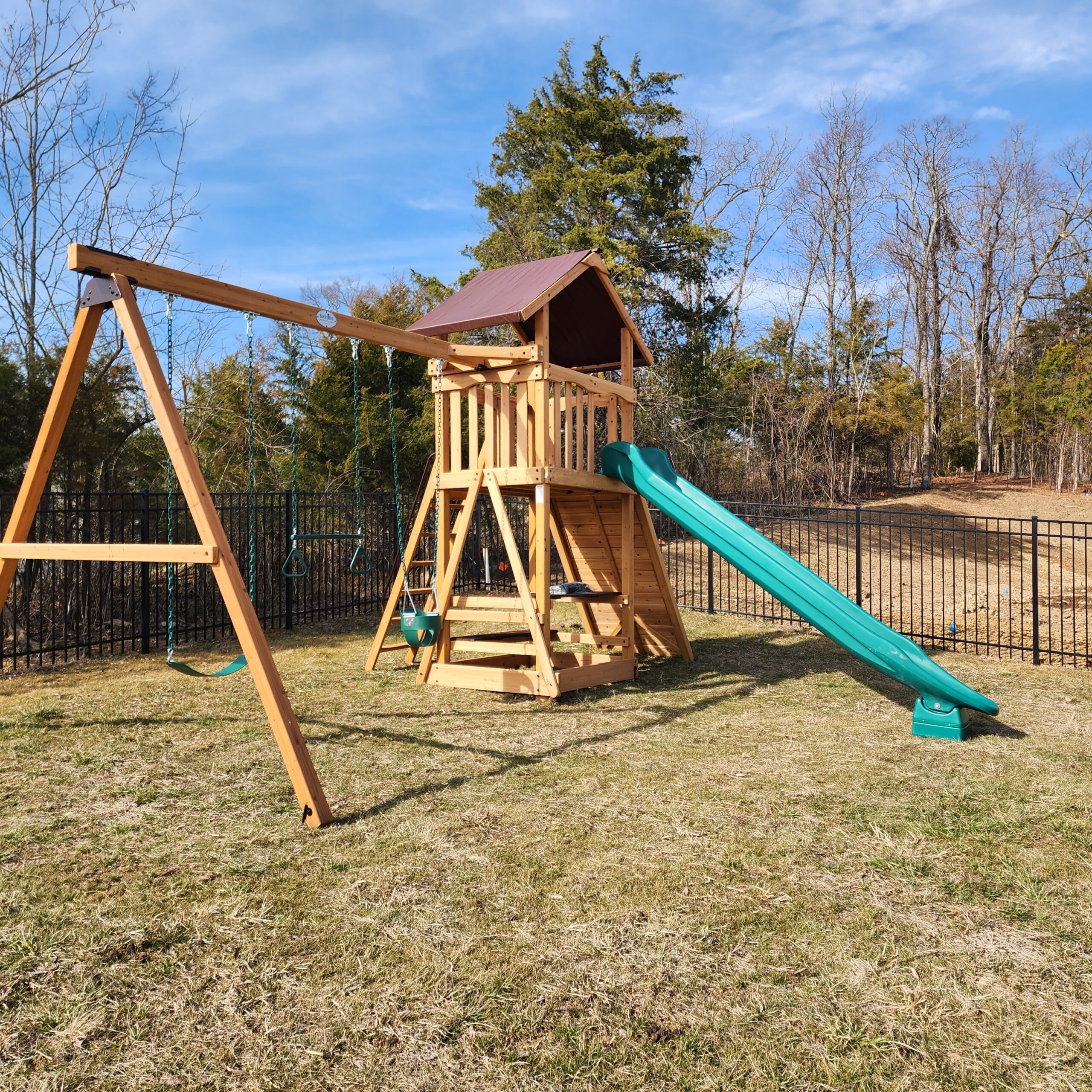 We have spent years developing this play set line, and as a result we are confident Summit Outlook Series is the best value available. You may first notice the new color pallet of light brown and mahogany colored stains that give these play sets a rich look, but there’s even more. The all new, unique hybrid style option lets you design play sets with both a lower playhouse and a tire swivel swing in the same structure. You can’t find this innovative value anywhere else!