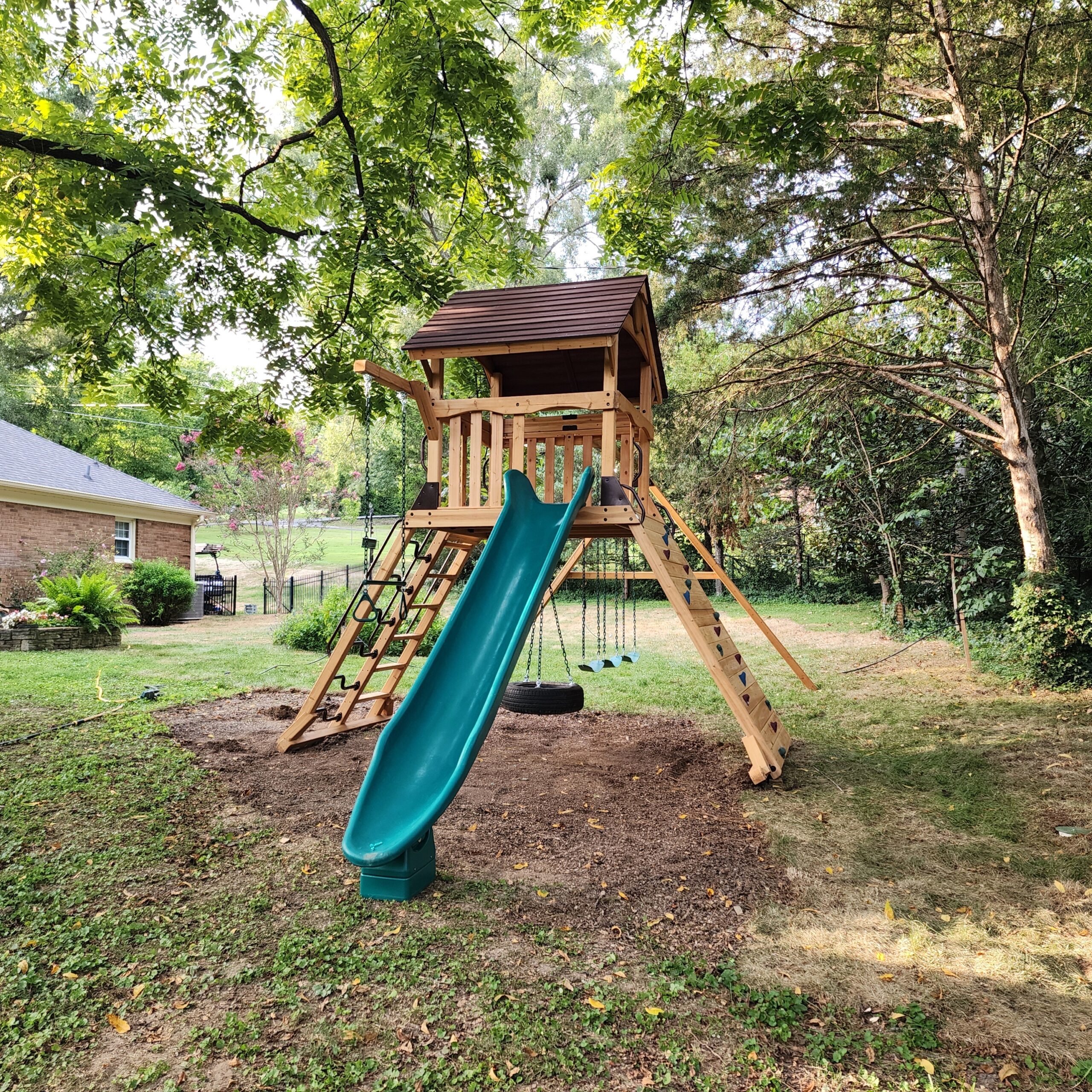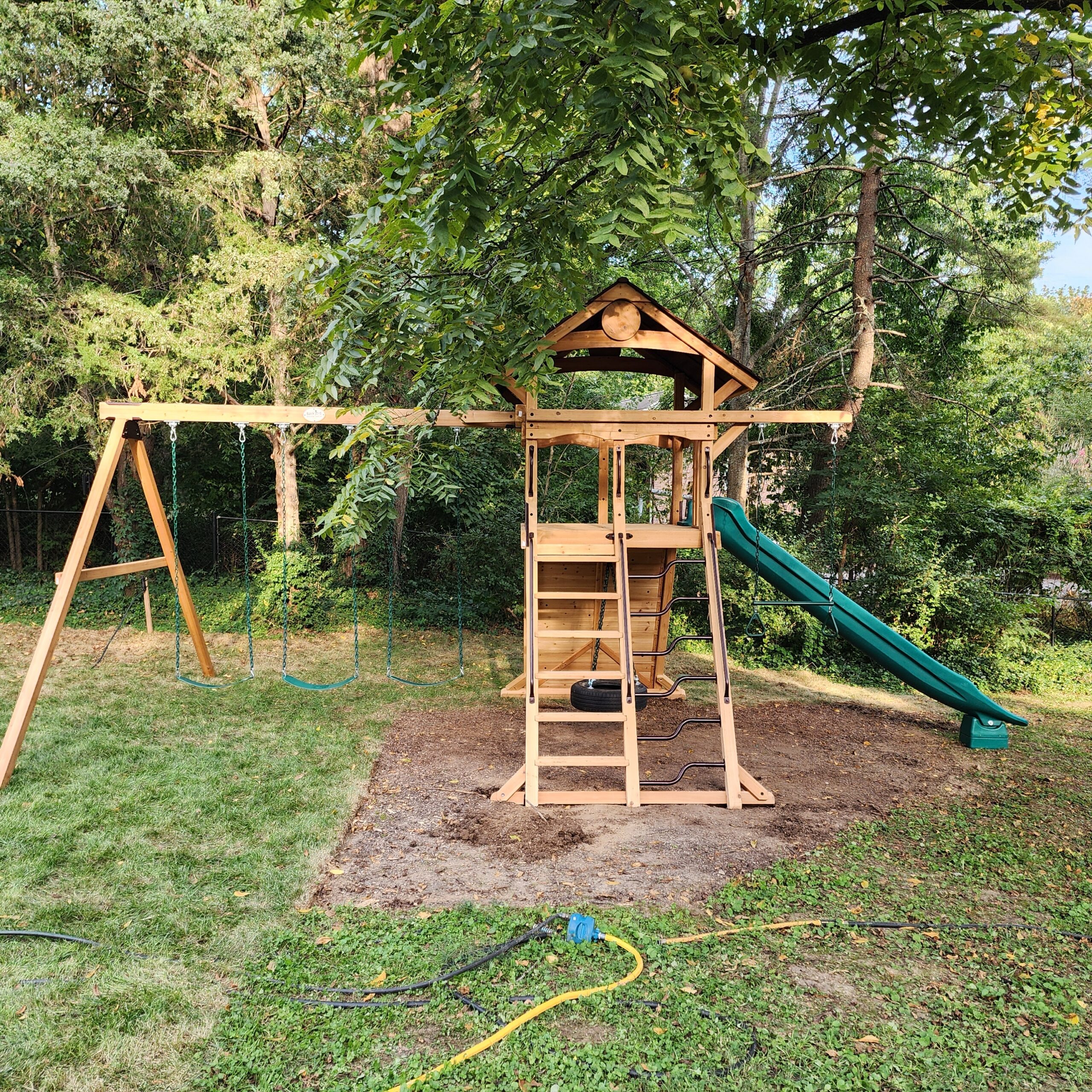We have spent years developing this play set line, and as a result we are confident Summit Outlook Series is the best value available. You may first notice the new color pallet of light brown and mahogany colored stains that give these play sets a rich look, but there’s even more. The all new, unique hybrid style option lets you design play sets with both a lower playhouse and a tire swivel swing in the same structure. You can’t find this innovative value anywhere else!
