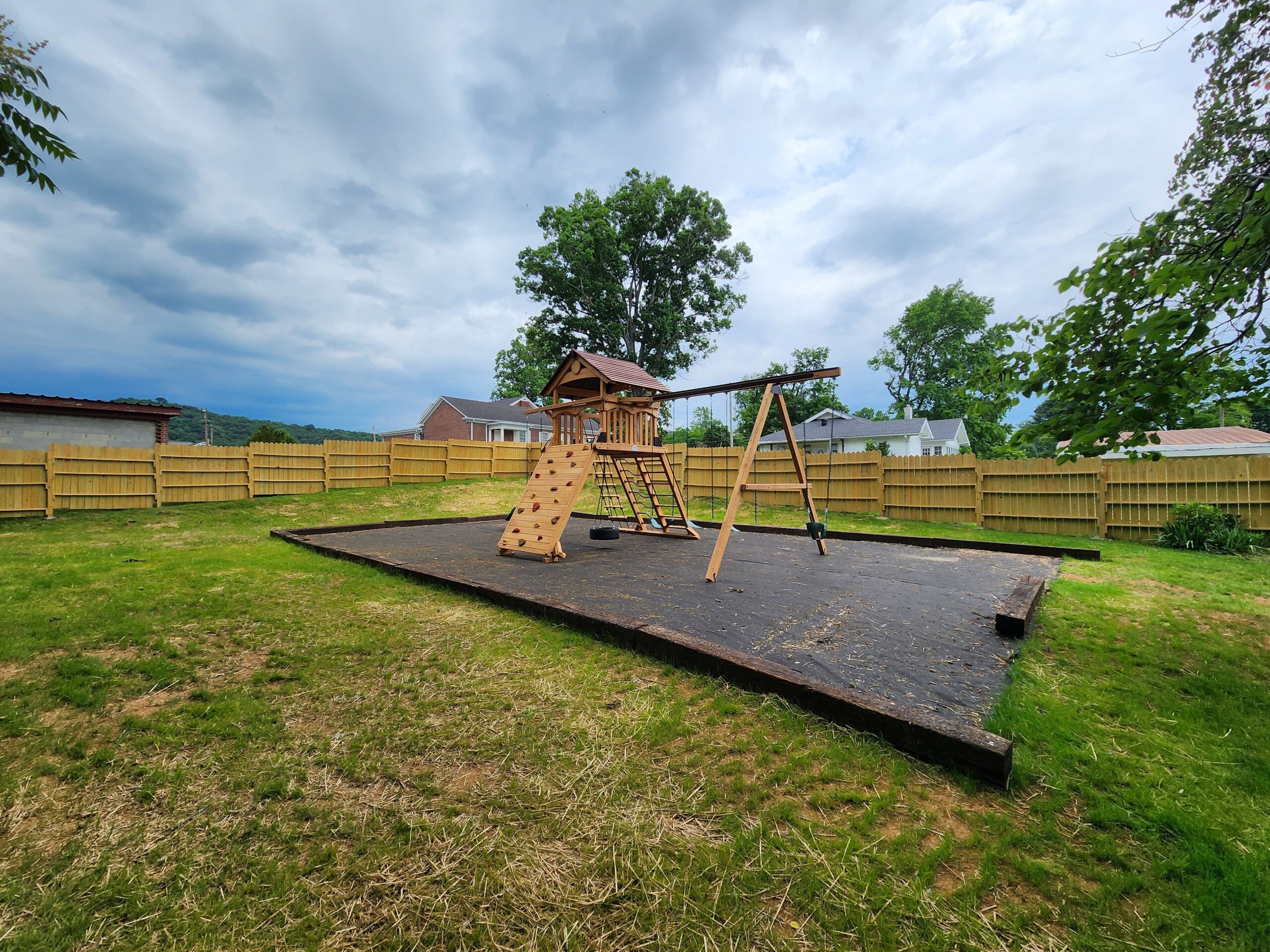 The fort structure has a 7 ft high deck with 30 sq. ft. of play space.